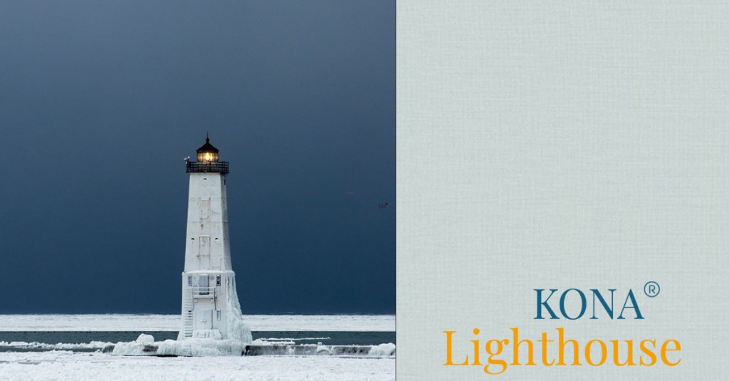 Today’s Kona Cotton color of the day is Lighthouse. Yesterday we went all dark and dramatic with Charcoal. Today we are flipping it around and going to light up your world with Lighthouse. Lighthouse is a very light, barely there light grey that could almost be described as a dirty white or even a misty white with hints of blue.